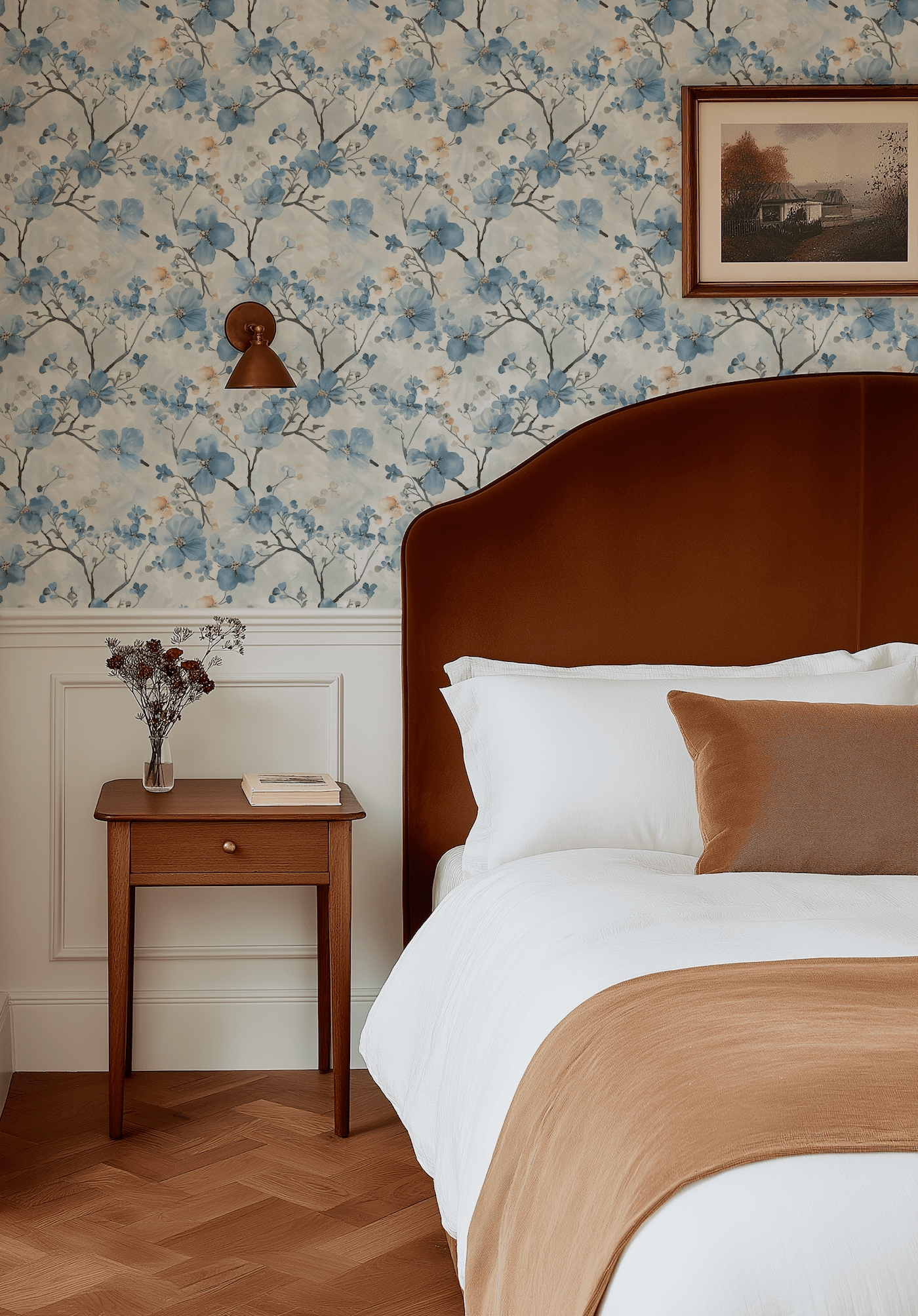 Tapeta świetnie sprawdzi się w sypialni, przedpokoju, jadalni, kuchni oraz biurze, tworząc przestrzeń pełną elegancji i spokoju. „Błękitny Ogród” to połączenie estetyki i trwałości, dzięki czemu będzie doskonałym wyborem do wnętrz, które pragną subtelnej dekoracji inspirowanej naturą.