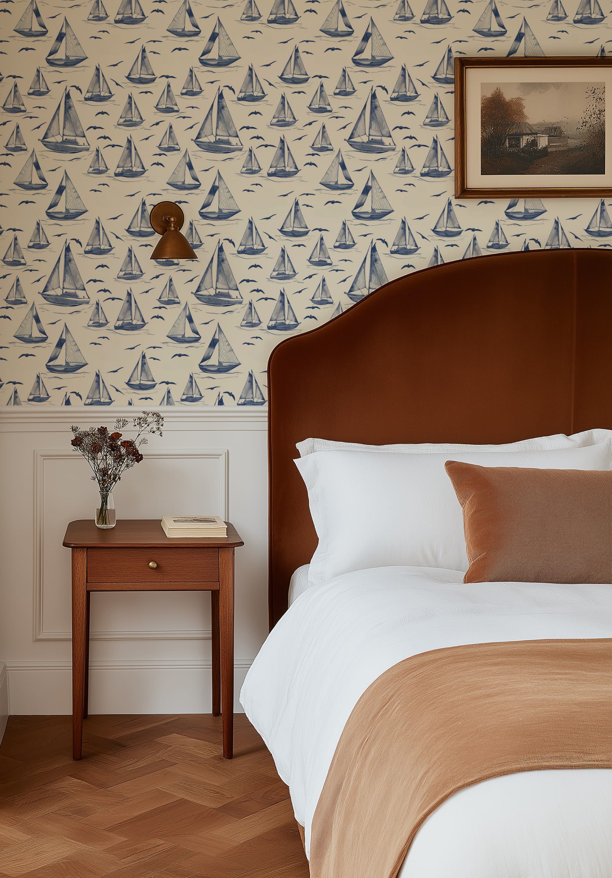 Tapeta Morska Przygoda to doskonała propozycja dla miłośników stylu marynistycznego, którzy pragną wprowadzić do swojego wnętrza świeżość i lekkość. Jej urokliwy wzór przedstawia granatowe żaglówki na jasnym, kremowym tle, co tworzy harmonijną i radosną atmosferę. Idealnie sprawdzi się w sypialni, przedpokoju, jadalni, kuchni, biurze, holu oraz pokoju dziecięcym, nadając każdemu pomieszczeniu oryginalny charakter.